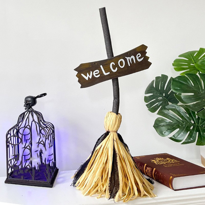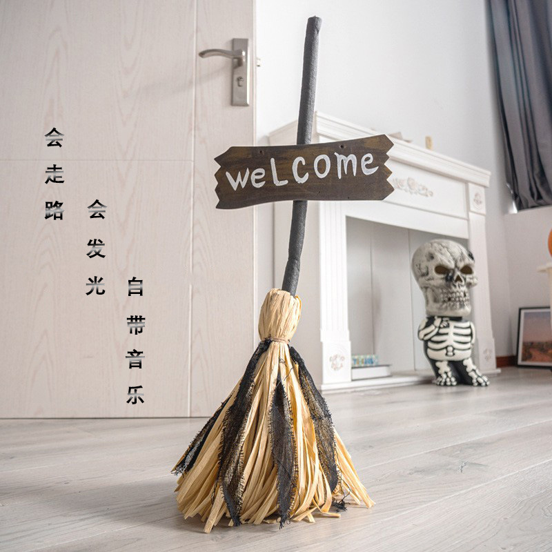 万圣节扫帚女巫魔法道具发光声跨境爆款酒吧鬼屋摆件电动扫把塑料