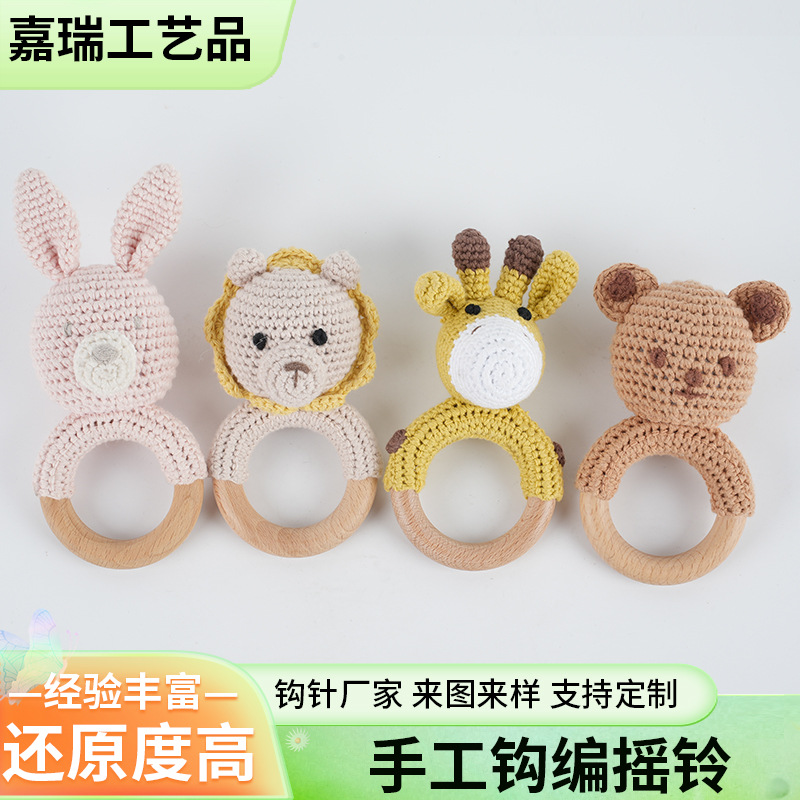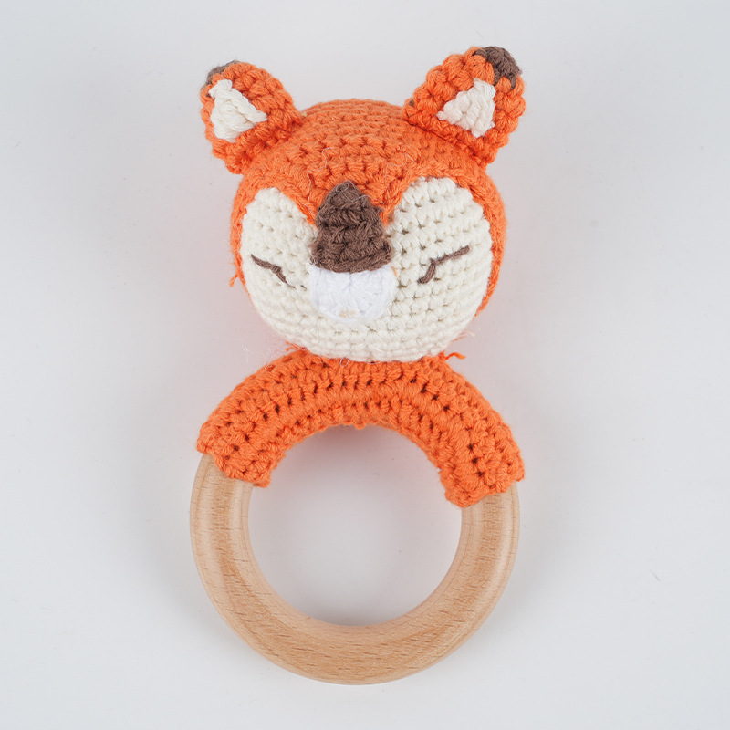 婴儿手工安抚玩具 手工钩编摇铃狐狸狮子钩针摇铃
