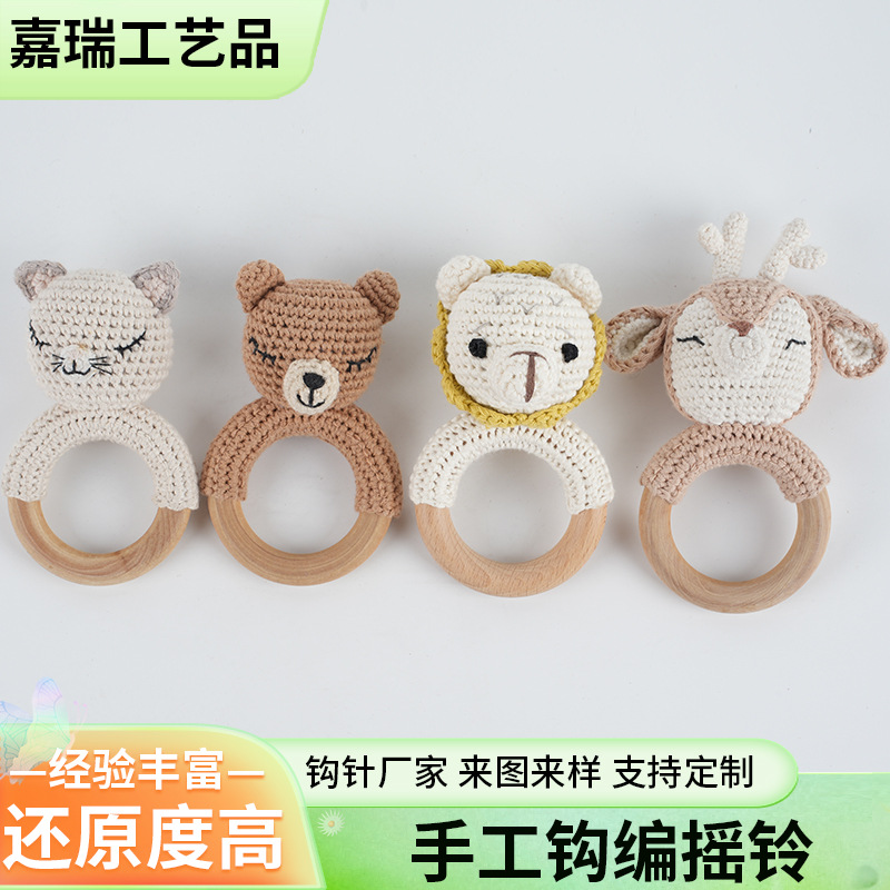 手工钩织卡通小熊摇铃宝宝安抚动物玩具床铃