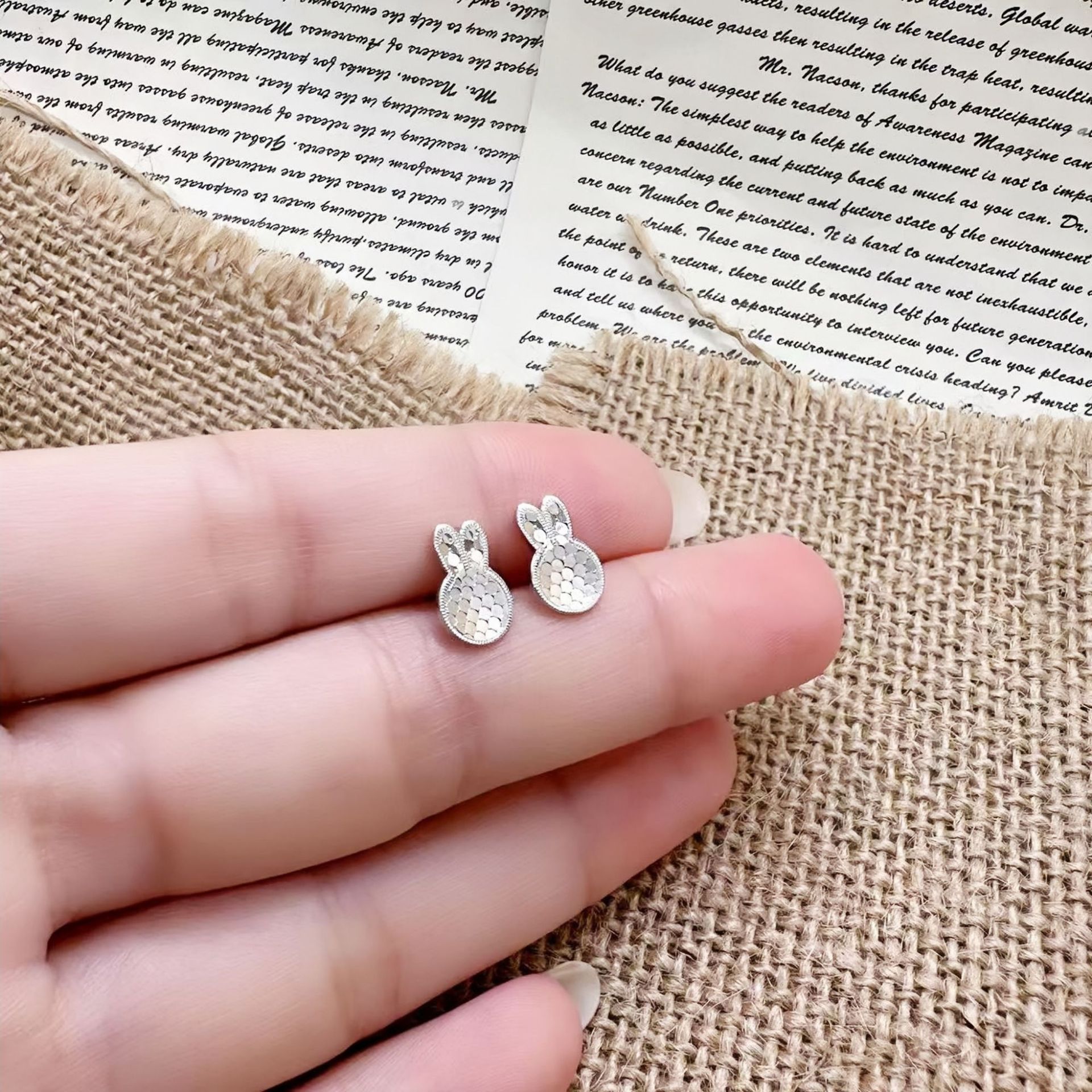 S925纯银碎冰冰兔子形耳钉女个性时尚耳骨钉ins气质耳饰品