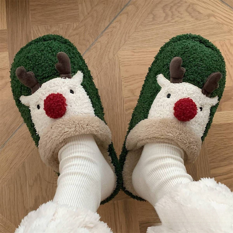 圣诞居家可爱男麋鹿情侣毛绒绒棉鞋时尚棉拖鞋女冬防滑ins现货