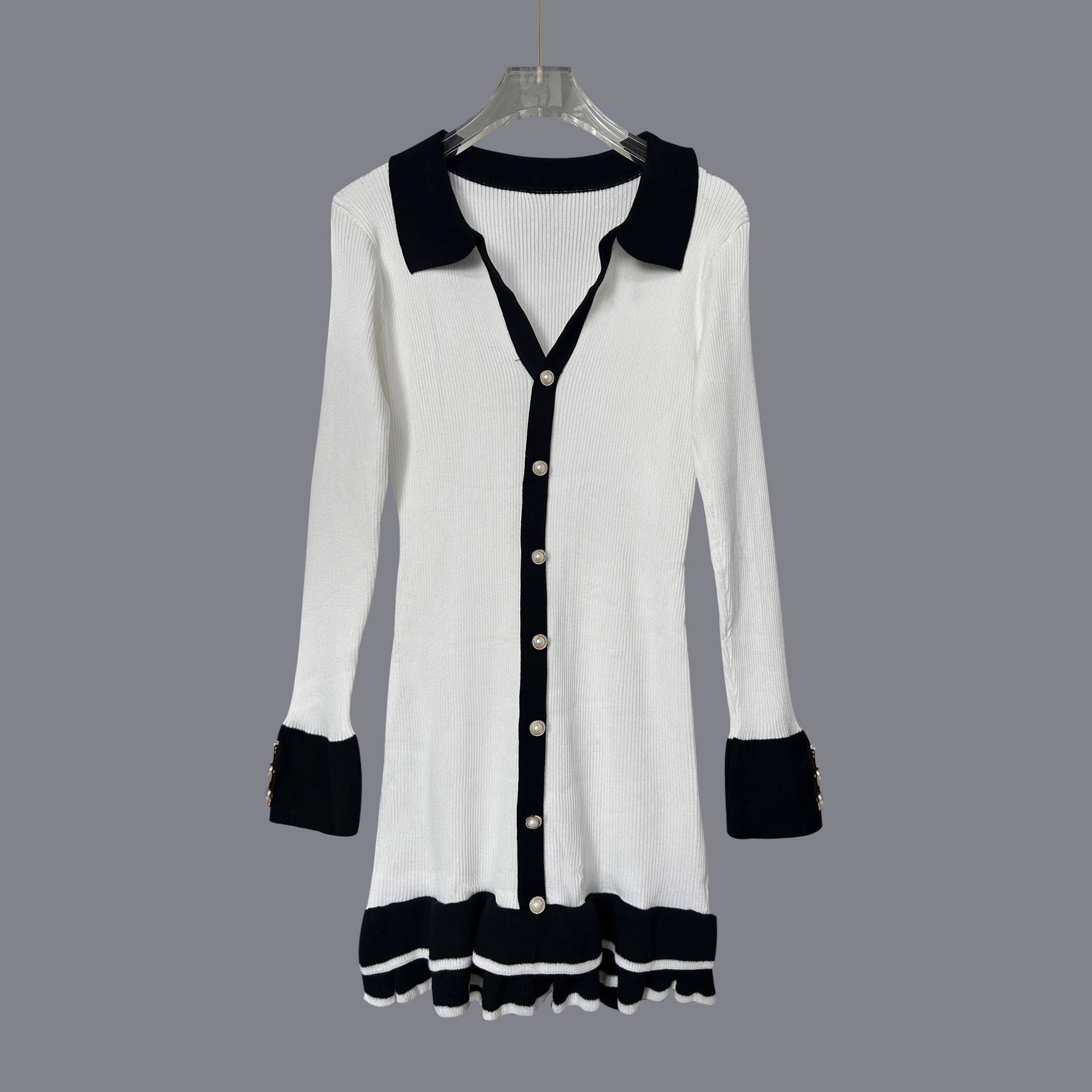 新款2025跨境热卖亚马逊秋冬气质优雅长袖开衫荷叶边欧美连衣裙