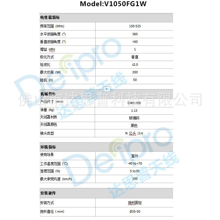 130-525MHz全向玻璃钢天线1dBi全频段覆盖高增益室外防水