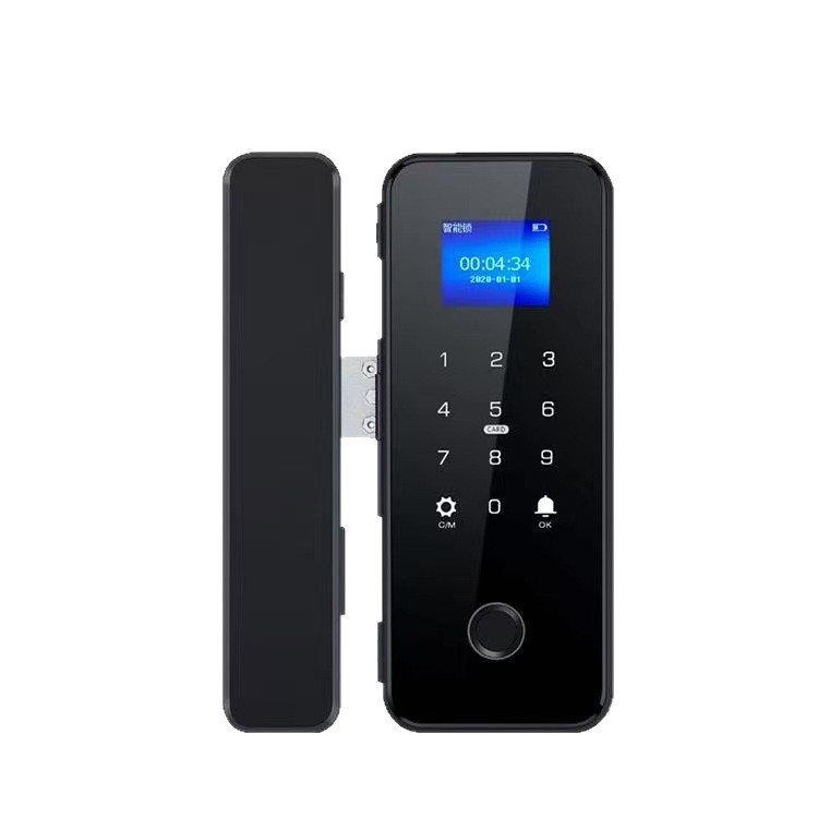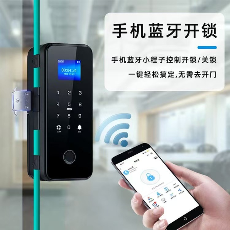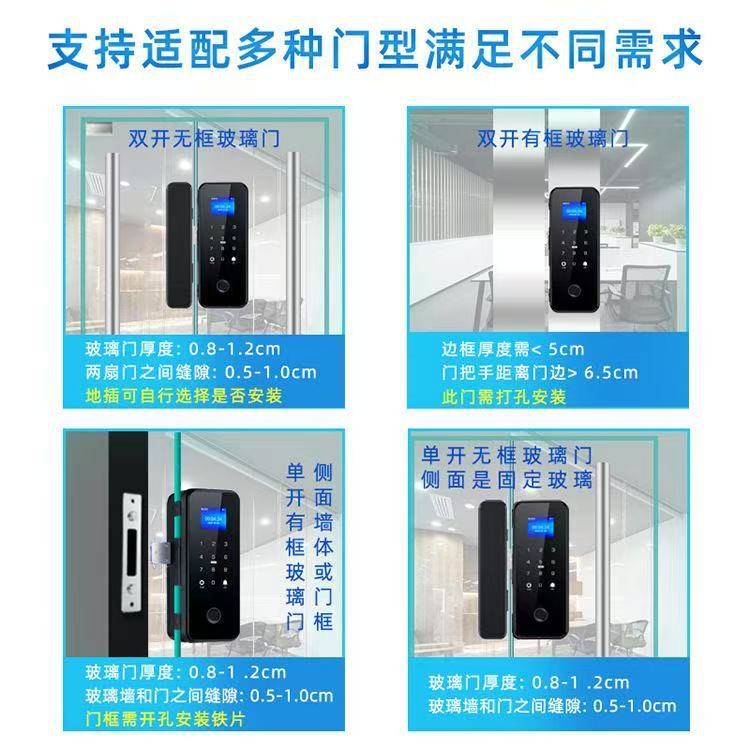 彩屏玻璃门指纹锁办公室指纹密码卡片锁 免开孔单门双门涂鸦WIFI