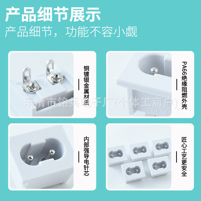 AC电源插座 DB-8 八字尾2针车载加热餐盒电源连接口 白色8字插座