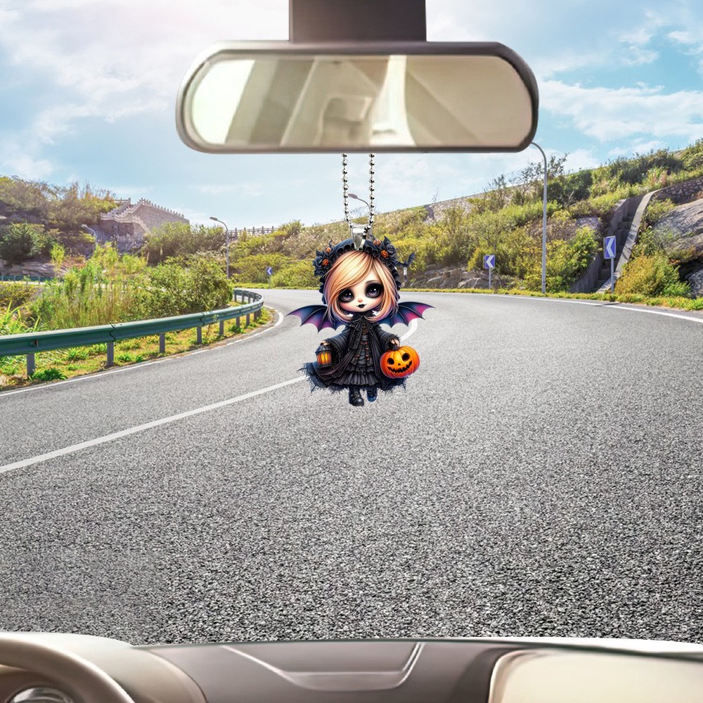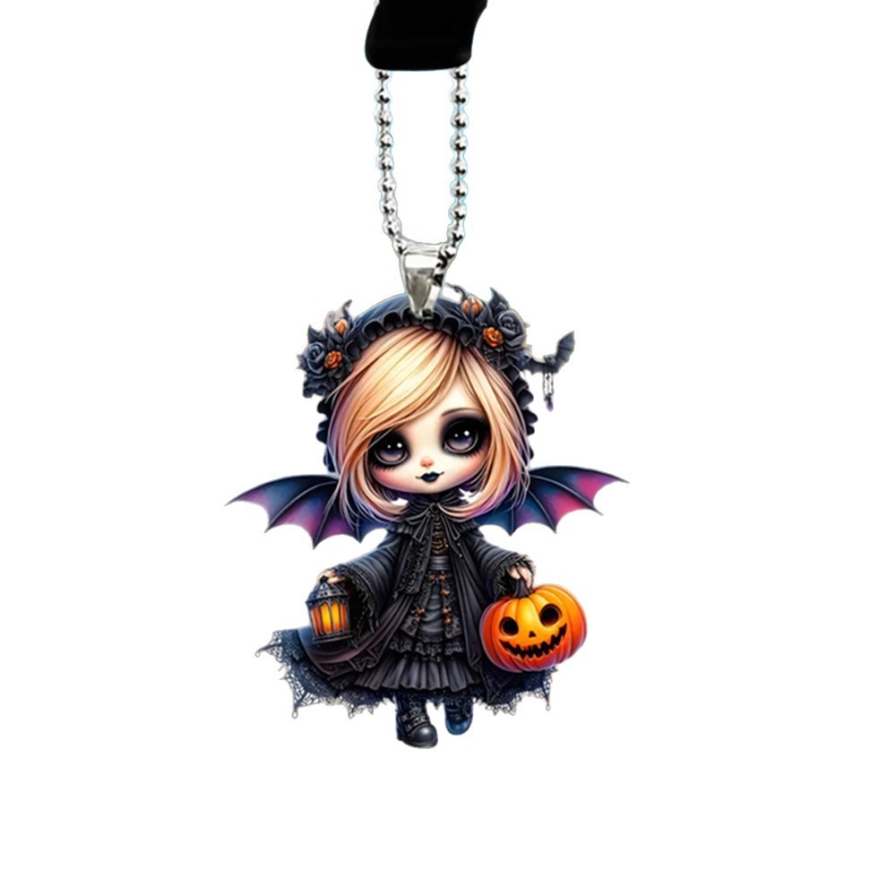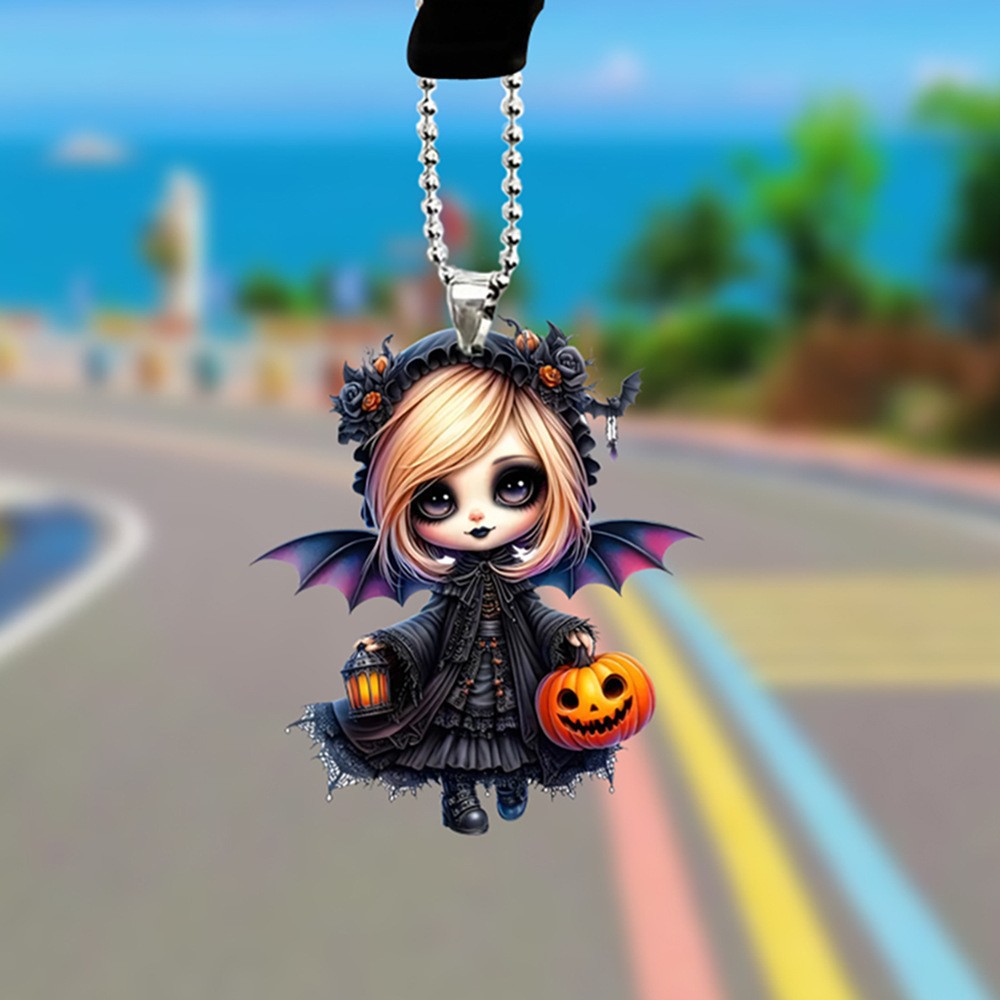 跨境万圣节爆款亚克力平面可爱手提南瓜女巫车载装饰品挂件