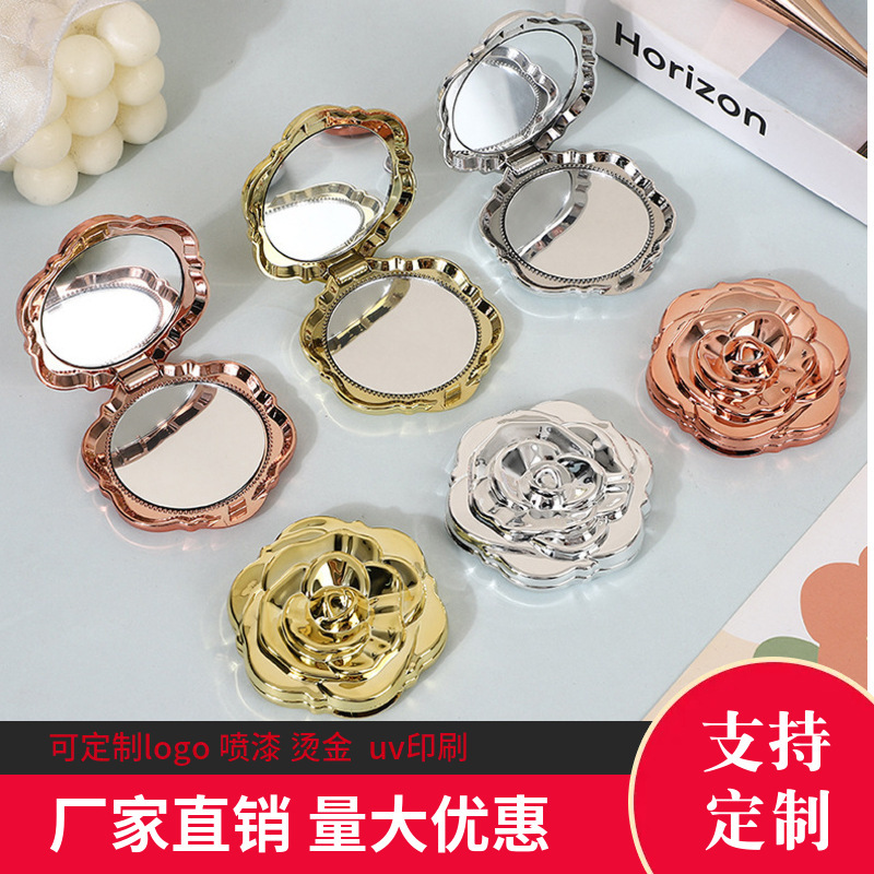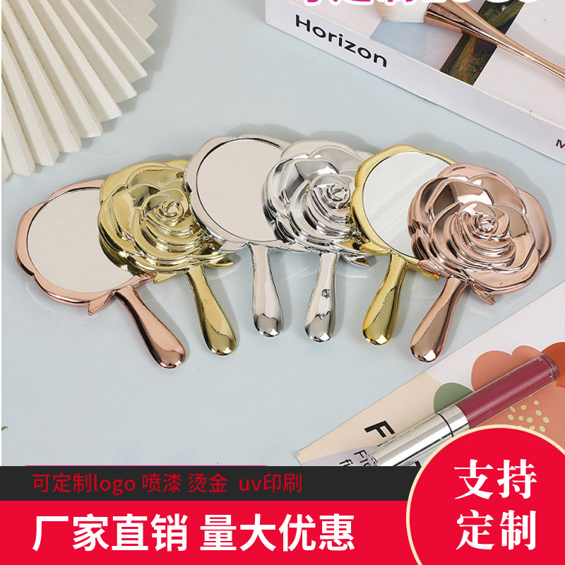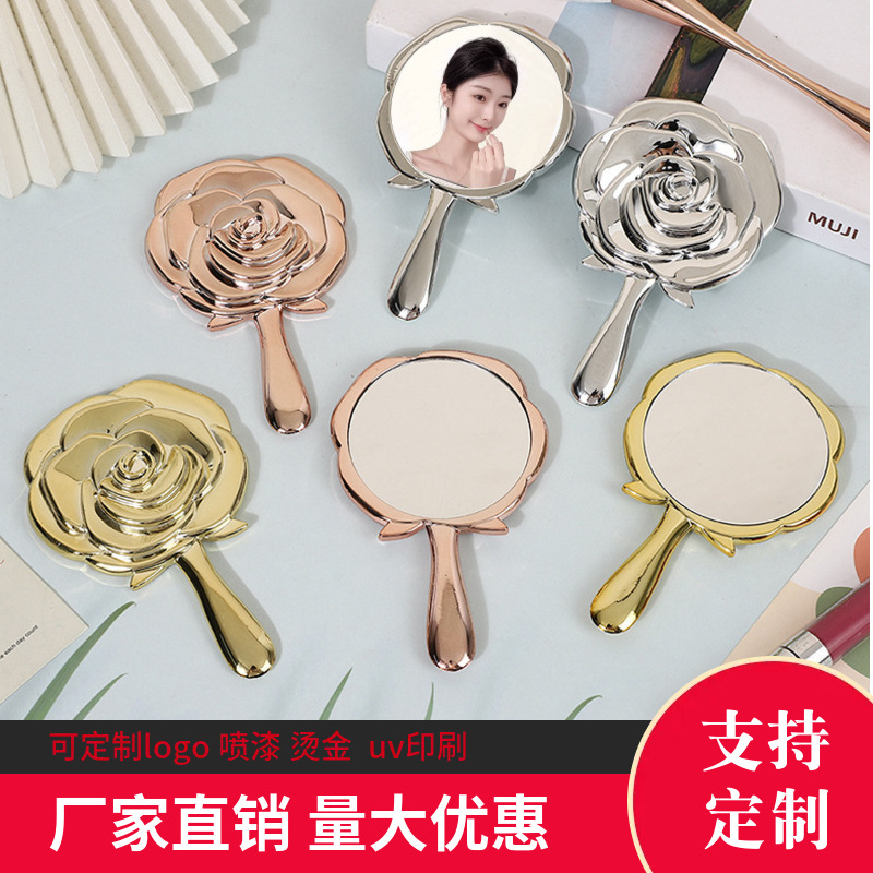 复古玫瑰花小镜子便携包包手柄化妆镜创意塑料镜美容梳妆镜子批发