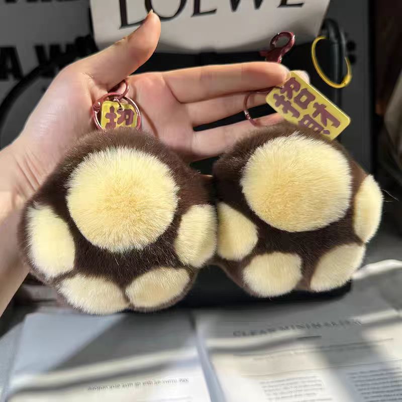 真獭兔毛小熊掌汽车钥匙扣挂件毛绒球公仔玩偶书包包挂饰手工动物