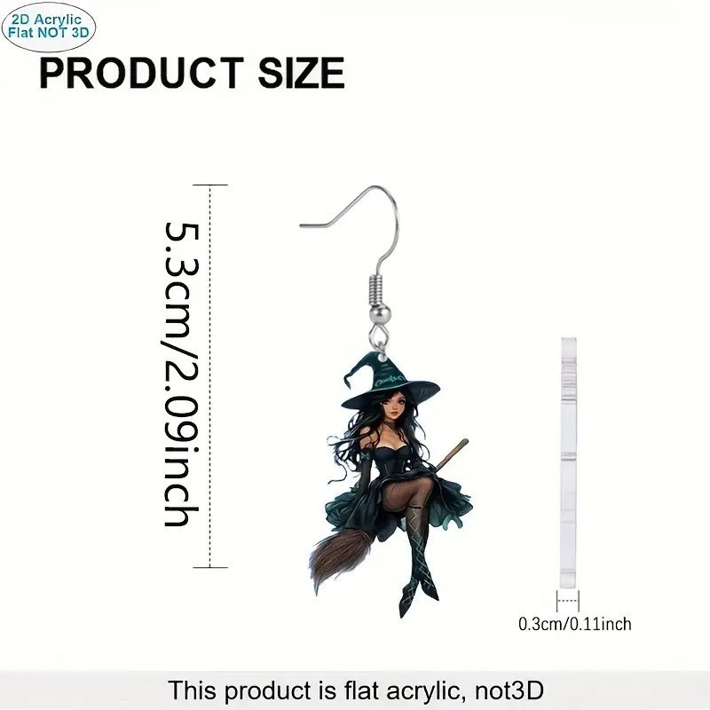 跨境新款万圣节女巫亚克力耳环暗黑创意设计感优雅卡通魔法师耳饰