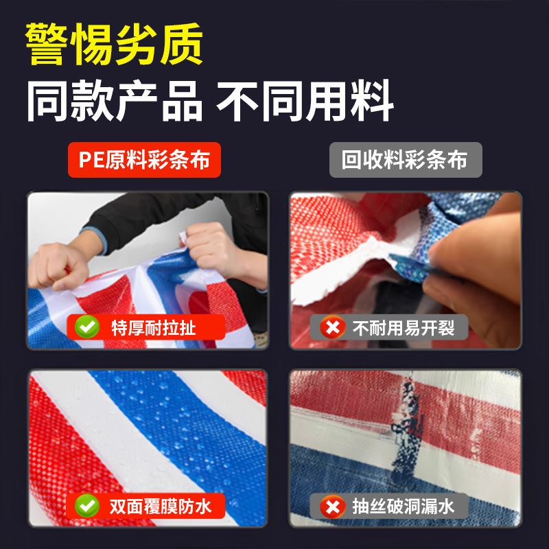 彩条布批发工地围档装修地摊三色防雨布防水防晒加厚塑料篷布油布