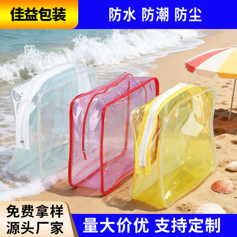 彩色纽扣PVC透明拉链袋洗漱自封袋收纳护肤品包装袋定制印刷LOGO