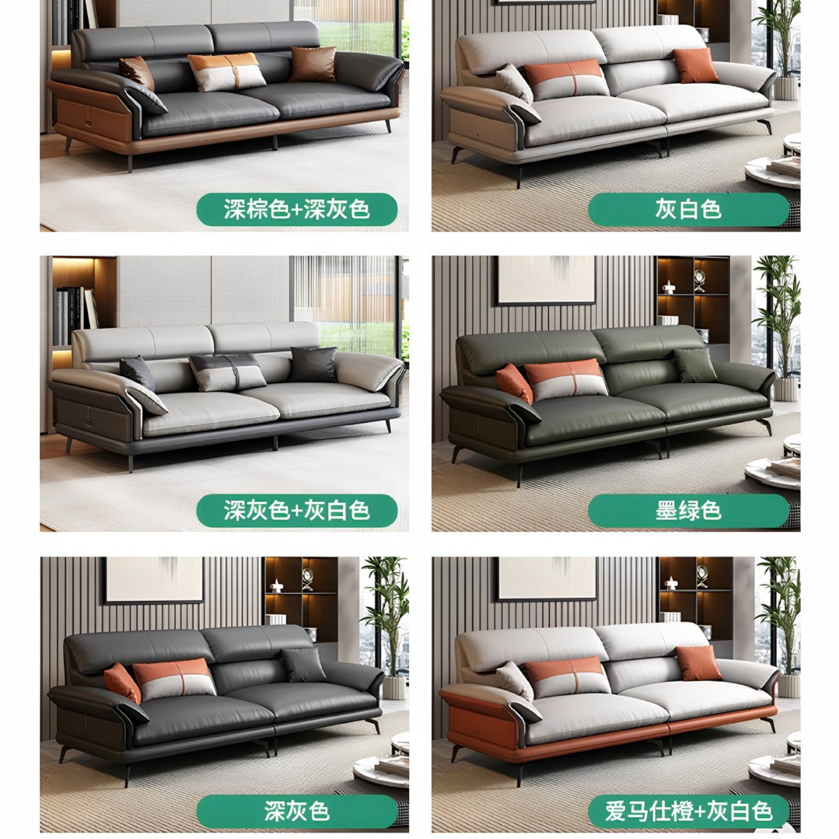 | 颜色 | 进口纳帕头层牛皮5cm乳胶-四人位 | 颜色 | 进口纳帕头层牛皮5cm天然乳胶-3+1 |