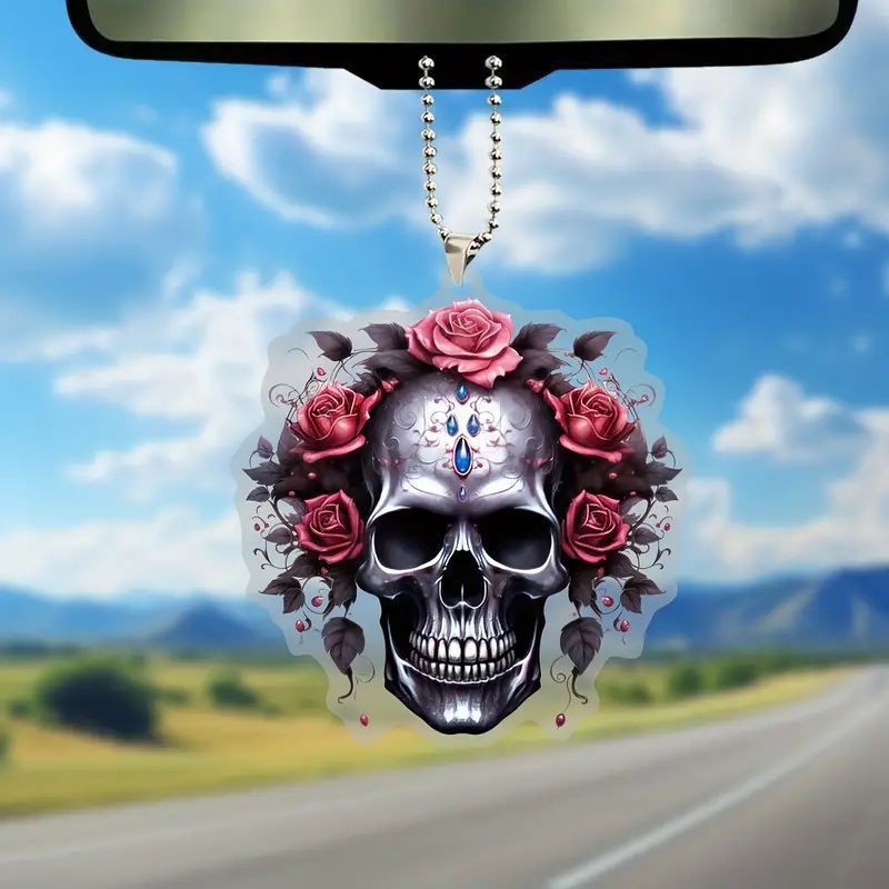 跨境亚克力平面万圣节恐怖汽车装饰品后视镜骷髅汽车吊饰挂件礼物
