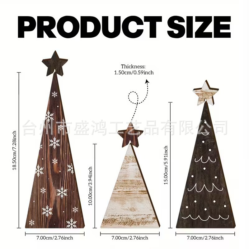 跨境圣诞树桌面木质摆件波点圣诞木树家居氛围桌面立式木质摆件
