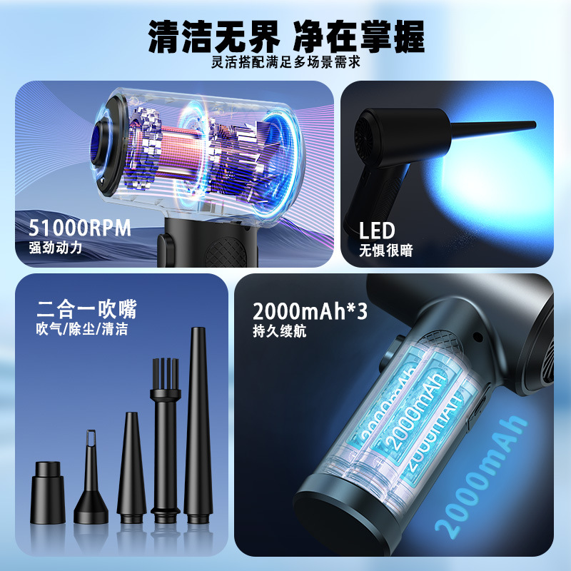 跨境爆款手持吹尘器主机键盘清洁除尘器车载便携式暴力风扇