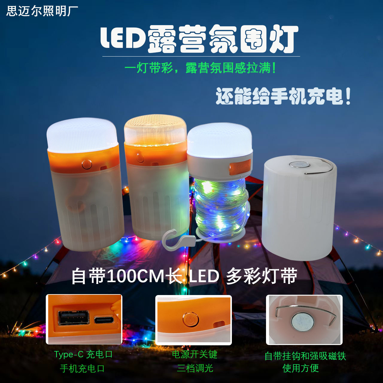 | 露营灯超长续航 | 露营灯超长续航 | 夜市摆摊氛围灯 | 夜市摆摊氛围灯 |