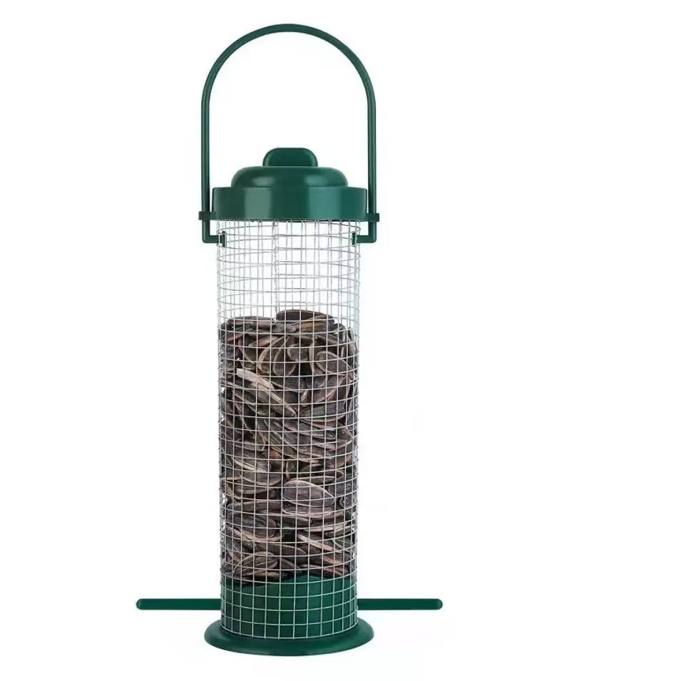 跨境专供户外喂鸟器悬挂式自动鸟类喂食器金属铁网喂鸟器三件套装