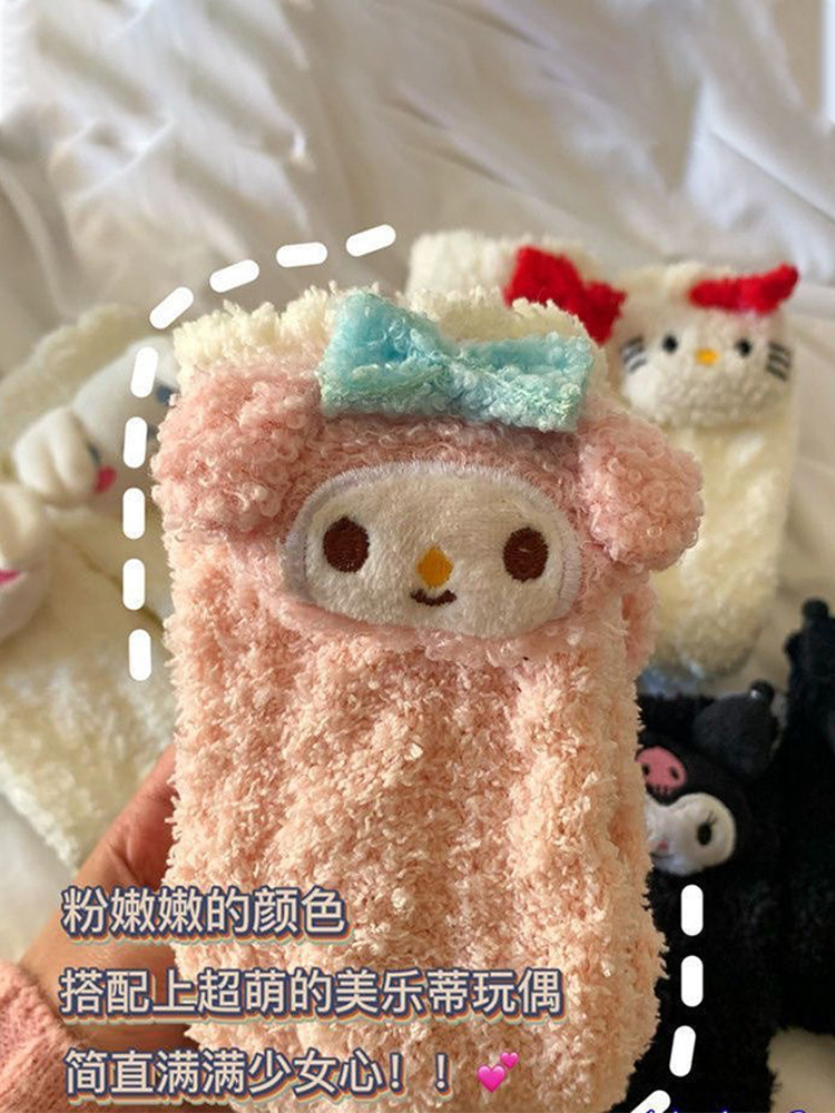 卡通猫咪袜子珊瑚绒可爱冬季睡眠袜加厚保暖中筒居家地板袜情侣