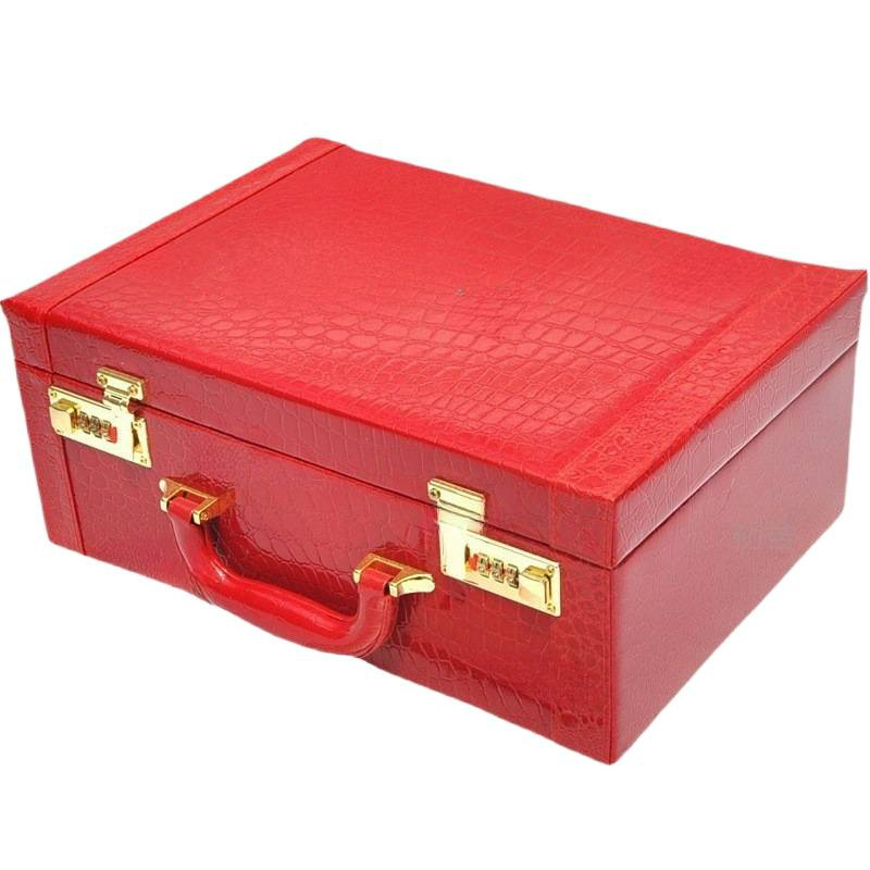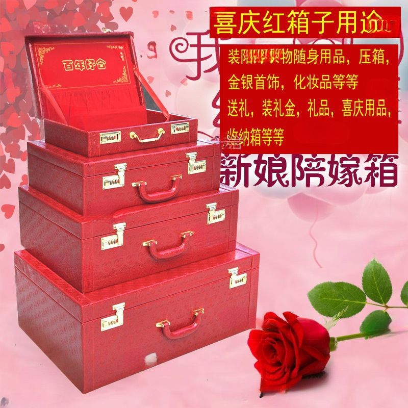 保存箱子收纳箱红色嫁妆结婚皮箱红陪嫁秀禾服纪念官箱手提密码箱