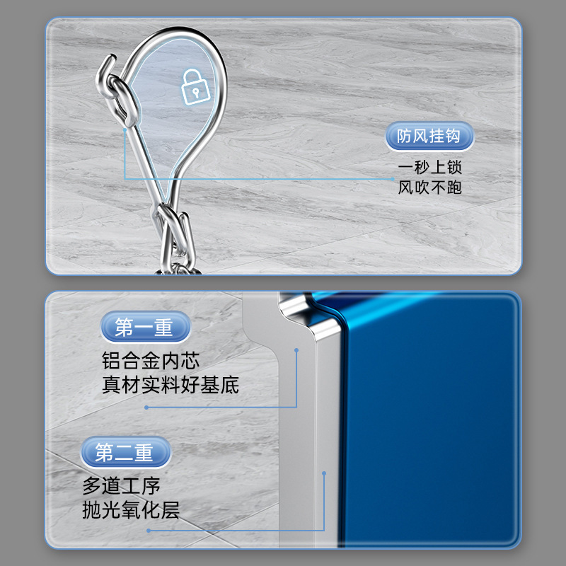 颜色 | 铝合金升级加厚-36夹-太空银【加粗骨架/防滑无痕夹】 | | 颜色 | 铝合金方形36夹-极光蓝【加粗骨架/防滑无痕夹】 |