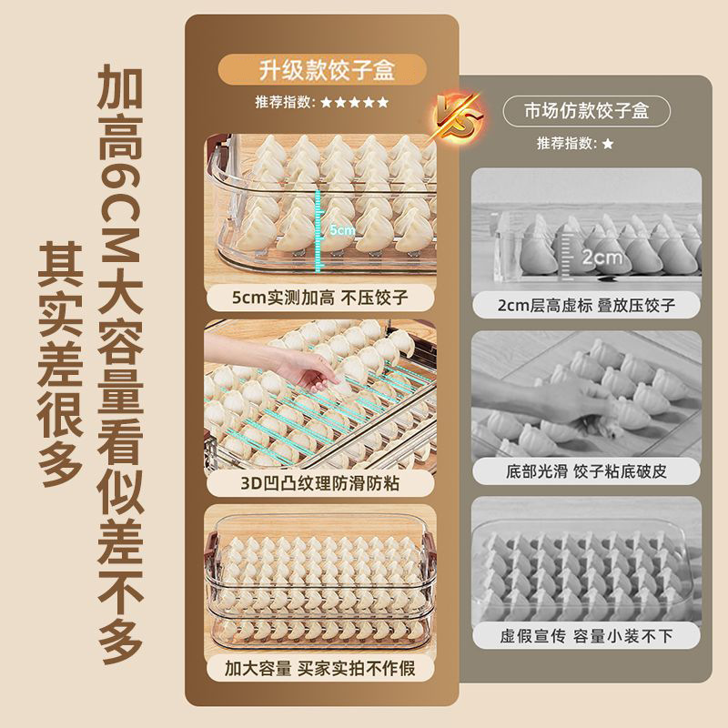 | 颜色 | 增高计时款/二层一盖/装121个饺子-工厂直销前99名下单打4.5折仅剩最后39件 | 颜色 | 增高款/一层/装60个饺子-工厂直销前99名下单打4.5折仅剩最后39件 |