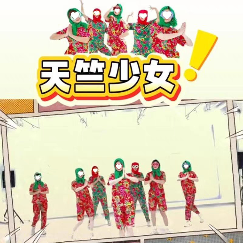 抖音天竺少女年会表演服元旦东北大花布搞笑显眼包演出服过年团建