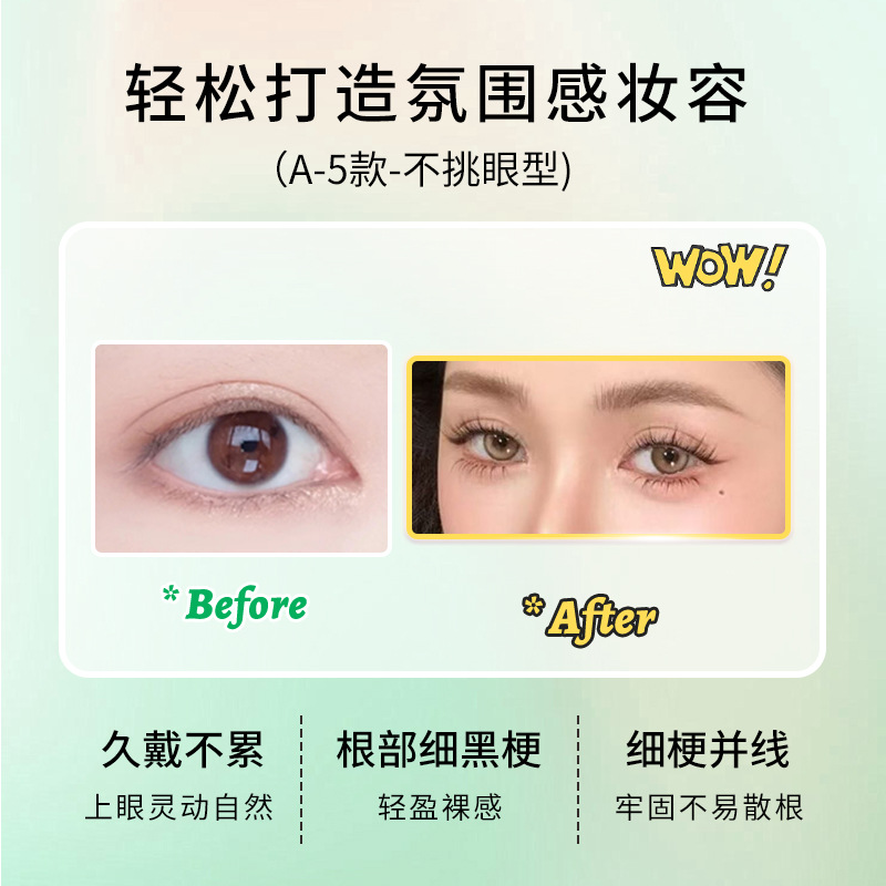 睫立颖A-5上睫毛女团漫画妈生感自然细梗整条睫毛纯欲卷翘假睫毛