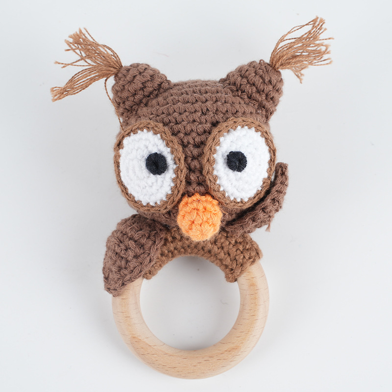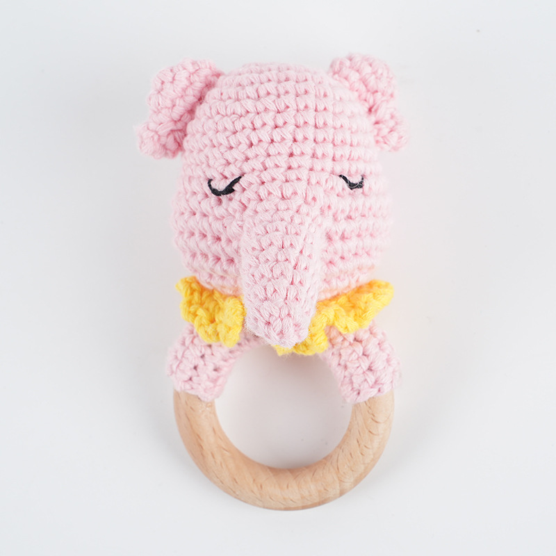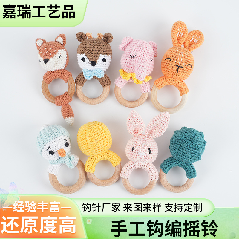 手工钩编摇铃婴儿安抚玩具创意针织狐狸大象玩偶钩编摇铃