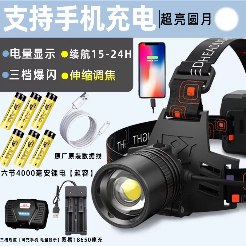 | 颜色 | 【白光】P120变焦头灯+数据线+三节18650锂电【三槽电显冲充电宝款】 | 颜色 | 【白光】P120变焦头灯+数据线+六节18650锂电【三槽电显冲充电宝款】 |