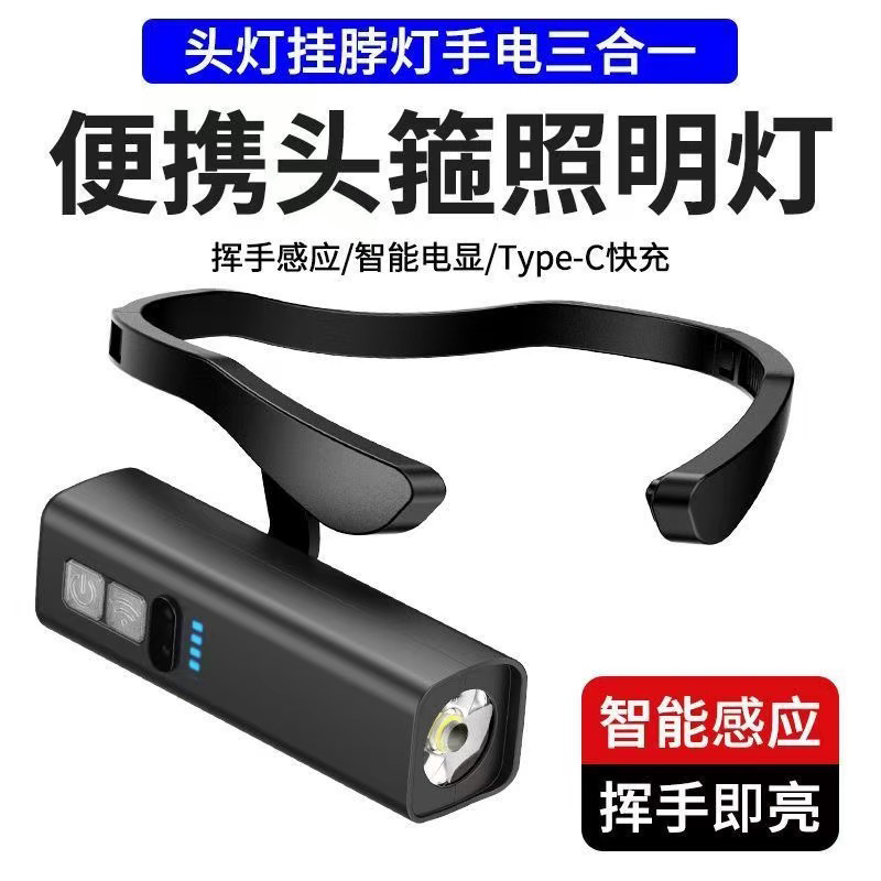户外头戴式头灯挥手感应挂耳式手电筒登山夜钓跑步灯太阳能灯