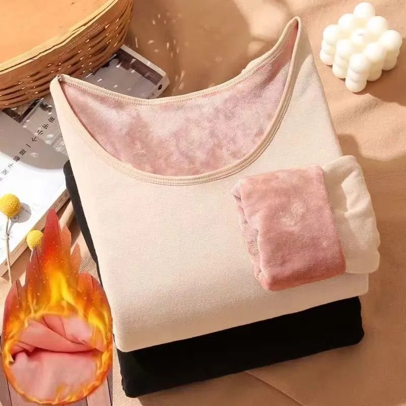 冬季保暖内衣女士加绒加厚大码斤可穿修身圆领长袖打底单/双件包
