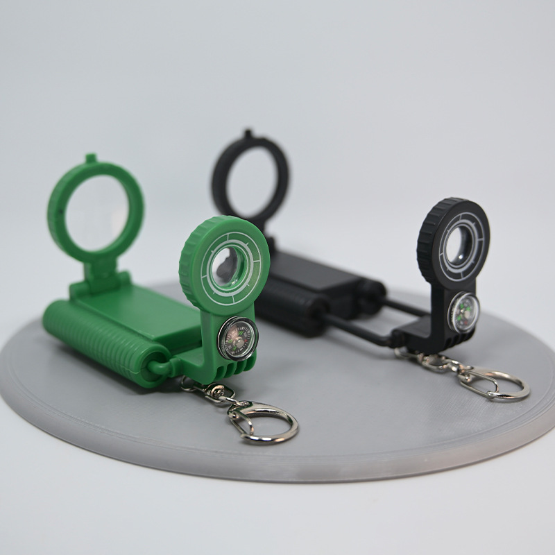 五合一迷你望远镜小巧便携放大镜LED灯可照明应急口哨挂件指南针