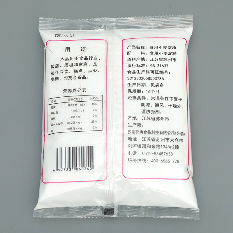 生产许可证编号 | SC12332058503786 | | 货号 | 食用小麦淀粉 |