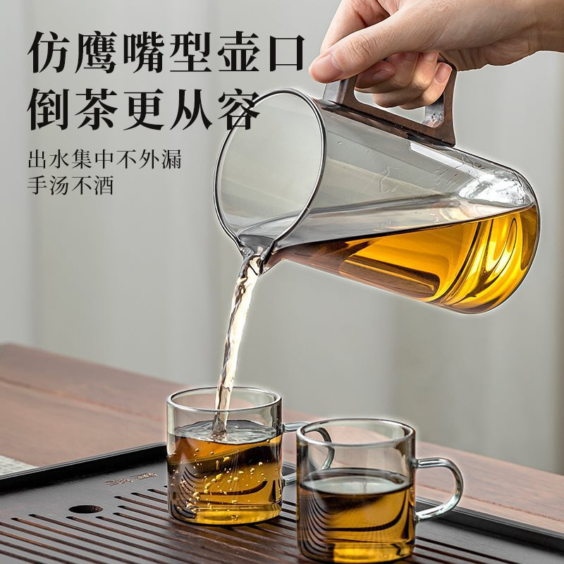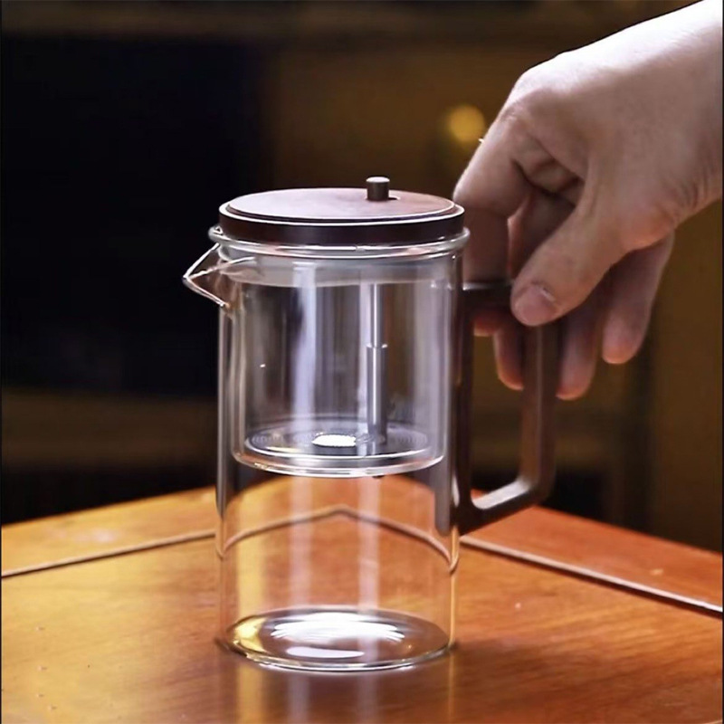 飘逸壶茶水分离杯绿茶壶加厚茶壶套装全玻璃内胆胡桃木泡茶壶水杯