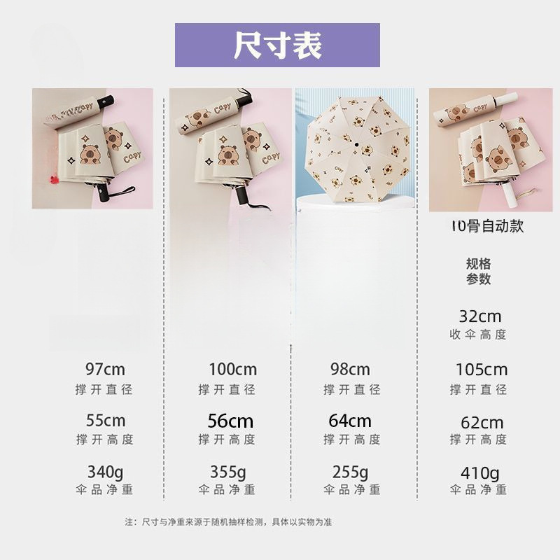 卡皮巴拉全自动雨伞女学生晴雨两用折叠伞防晒防紫外线太阳伞包邮