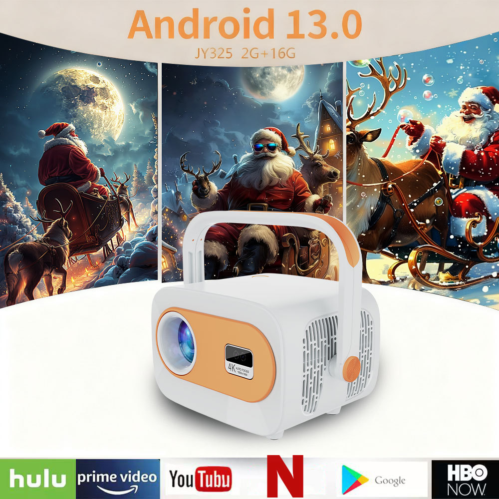 JY325高清投影仪家用卧室投墙双WiFi蓝牙安卓13便携投影投影机