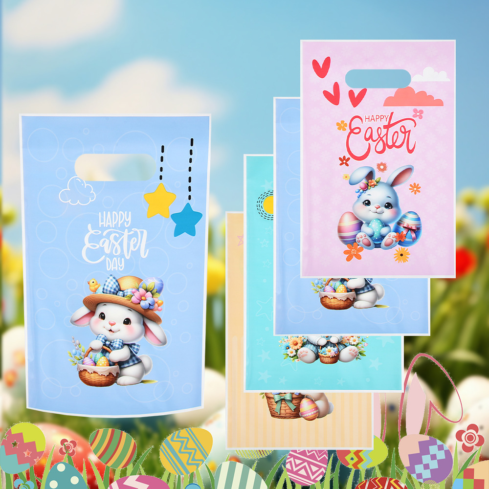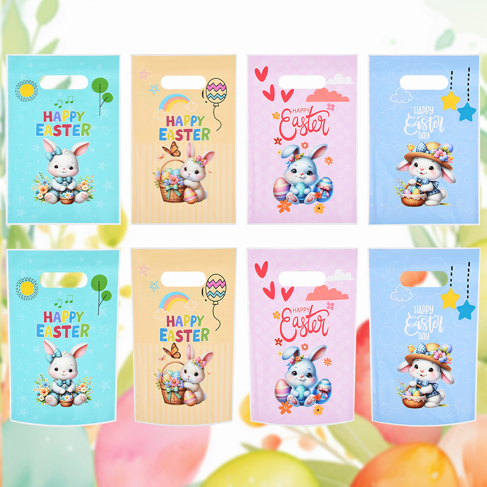 新款复活节opp手提袋可爱兔彩蛋糖果袋玻璃纸包装厂家批发