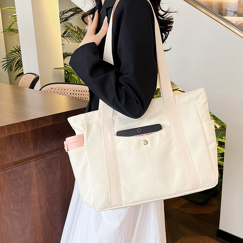 跨境帆布包简约休闲大容量耐磨大学生上课单肩包百搭通勤日常包