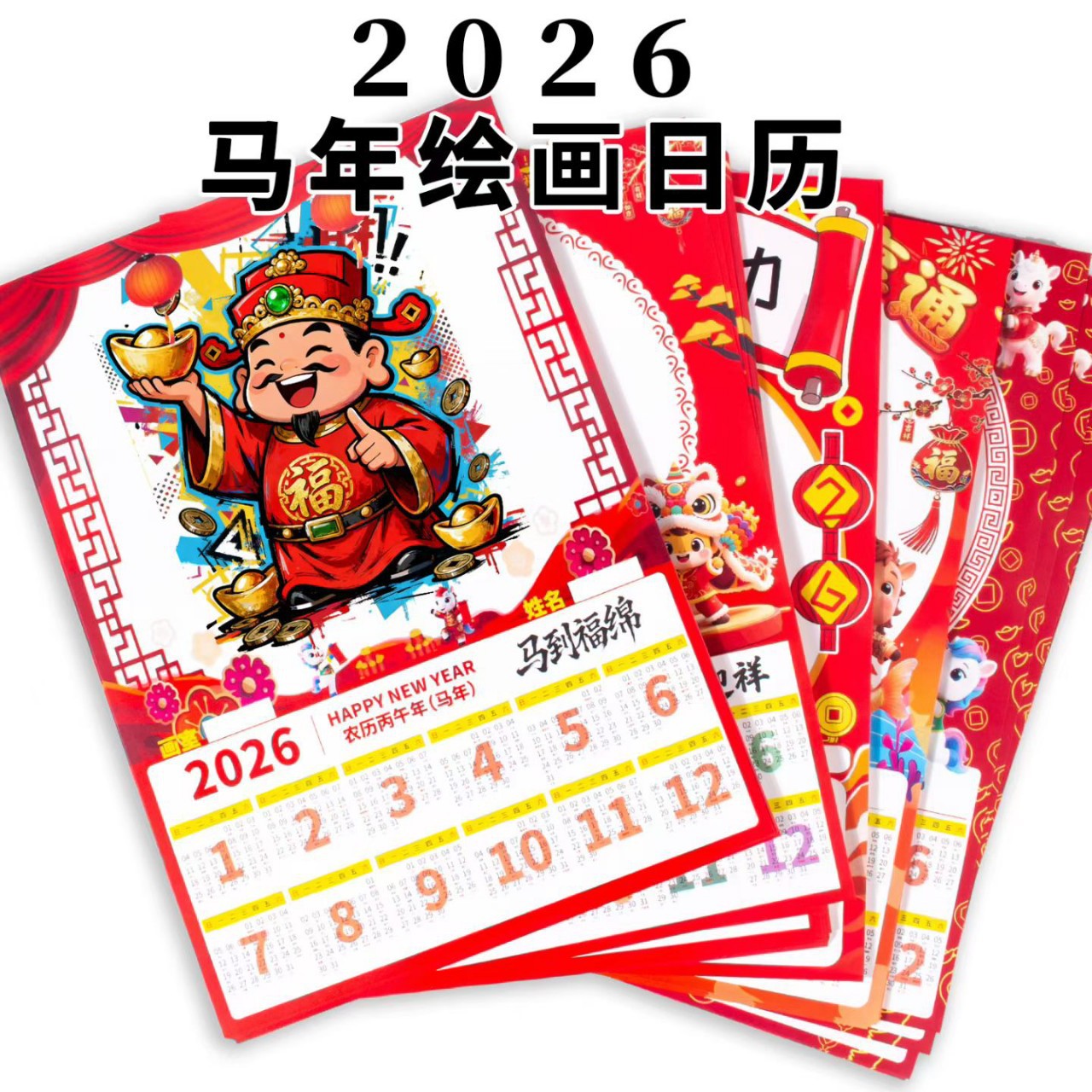新年加厚挂历画室绘画马年年2026马年挂历手绘空白挂历