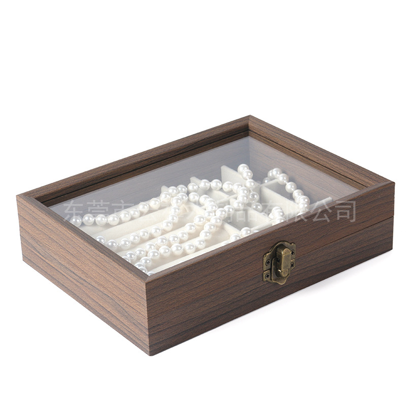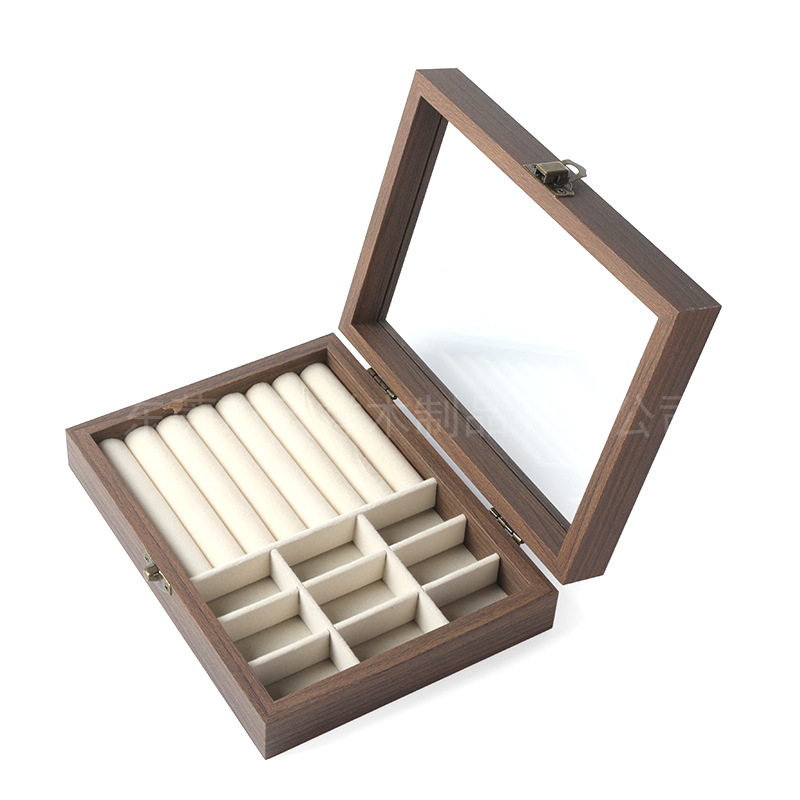 木质珠宝首饰盒 首饰收纳木盒 黑胡桃木纹首饰盒