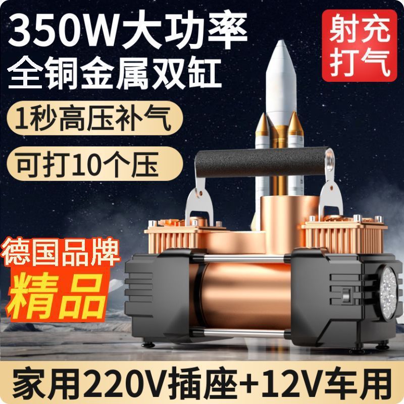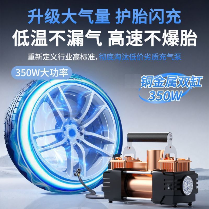 金宜佰车载充气泵350w大功率车用家用两用轮胎双缸高压电动打气泵