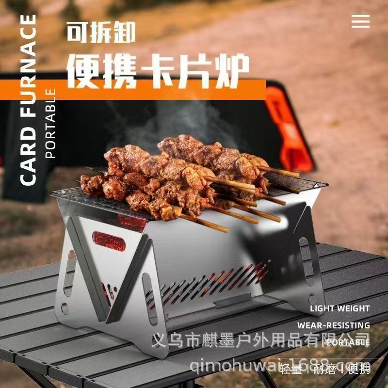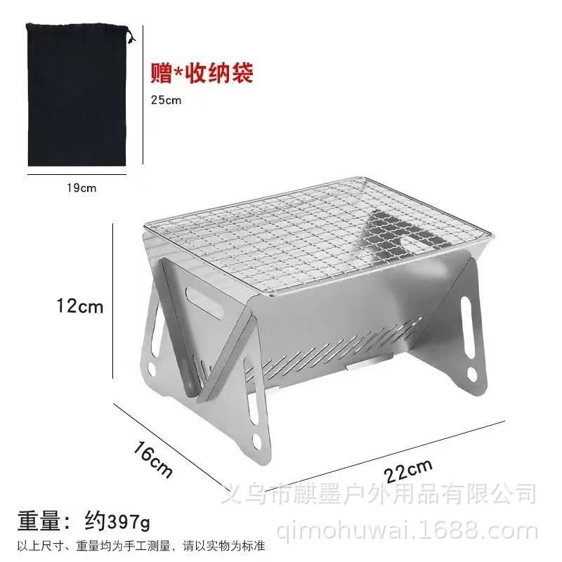 折叠烧烤卡片不锈钢火炉烧烤炉柴火野营用品便携式烤架炉具便携