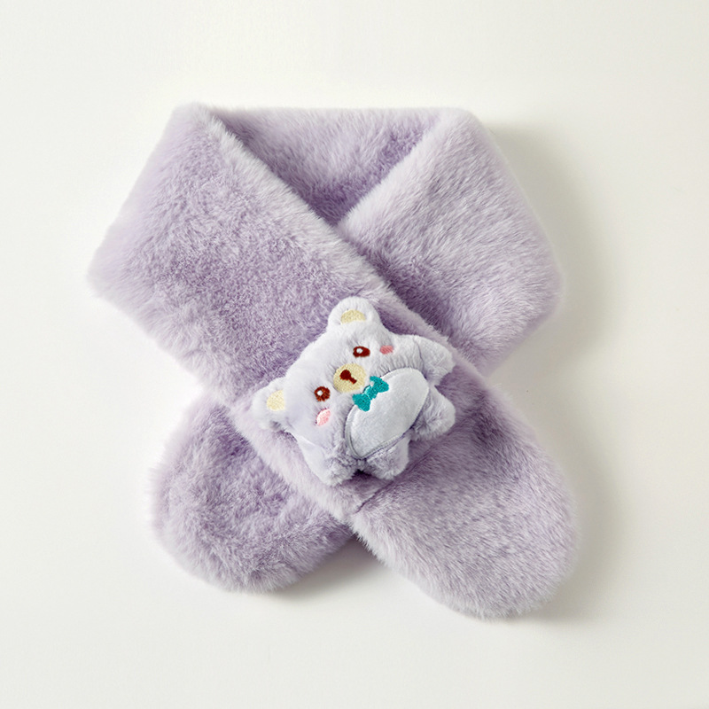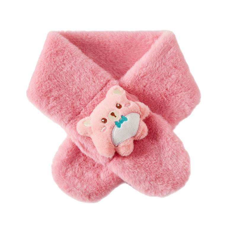 可爱2025新款保暖宝宝兔毛仿围脖款男童卡通加厚秋冬毛绒围巾儿童