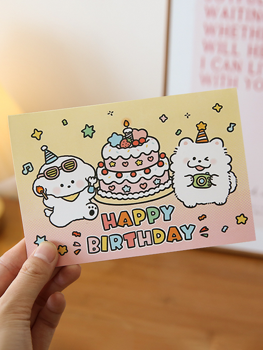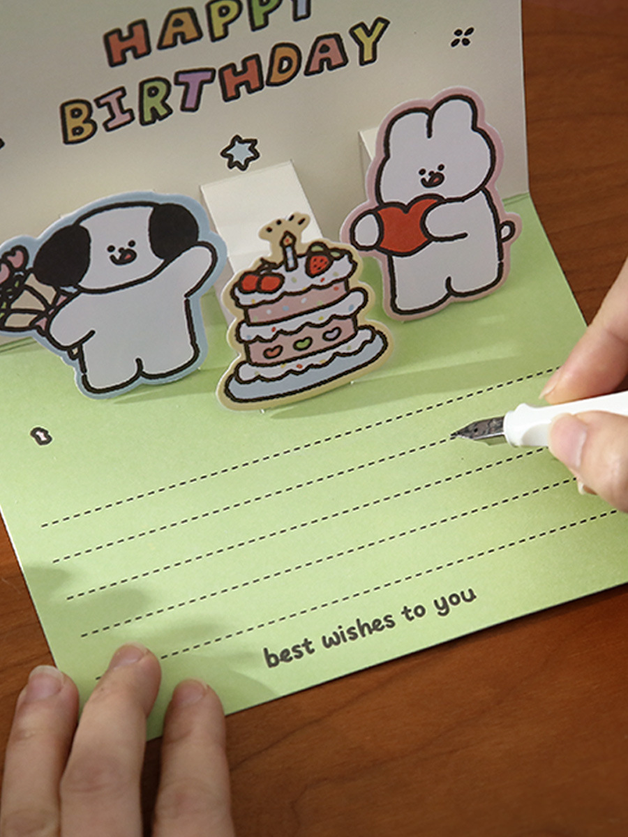 小日子不翻篇 卡通小狗立体生日贺卡 ins创意可爱手写祝福留言卡
