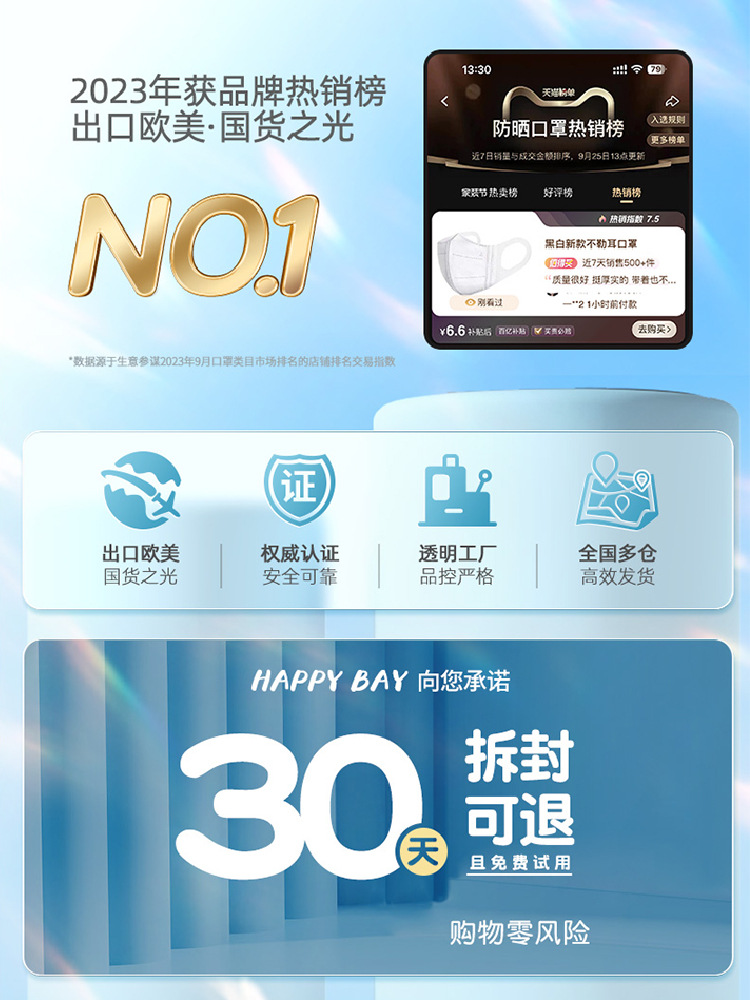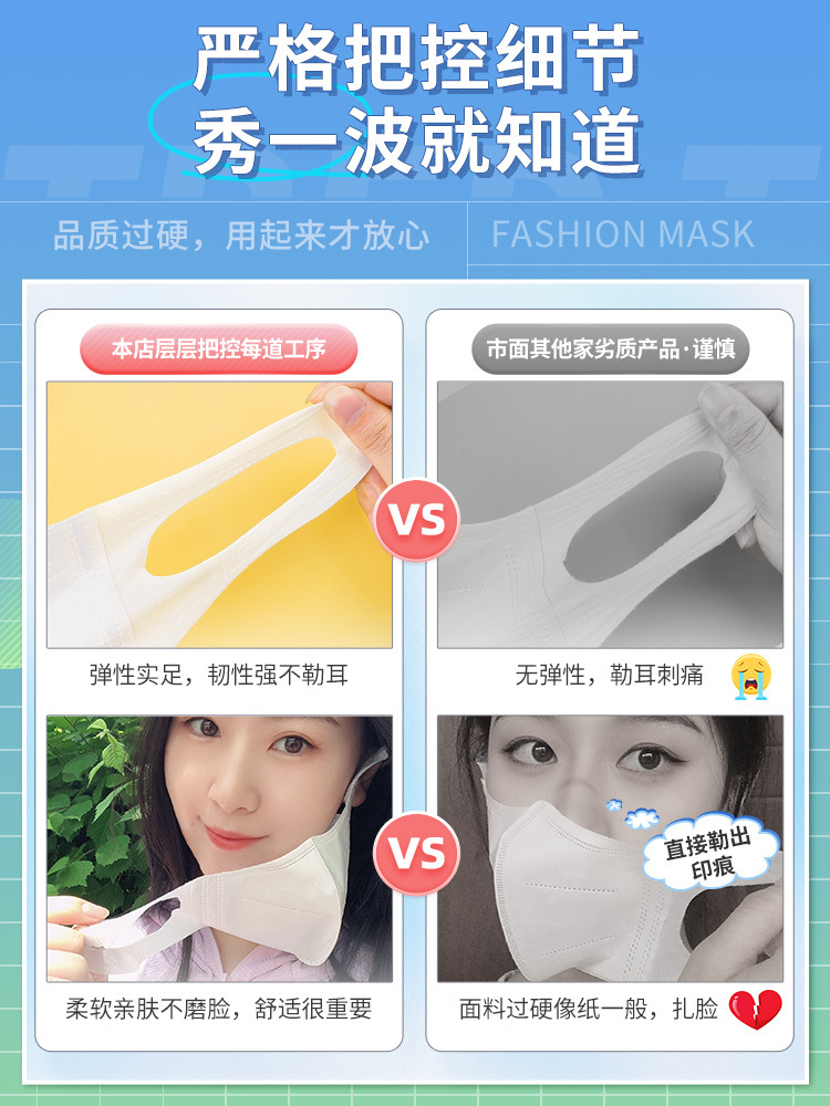 | 颜色 | M码(适用75-130斤)成人/学生推荐-【3d显脸小】白色30只【非独立装】 | 颜色 | M码(适用75-130斤)成人/学生推荐-【3d显脸小】白色50只【非独立装】 |