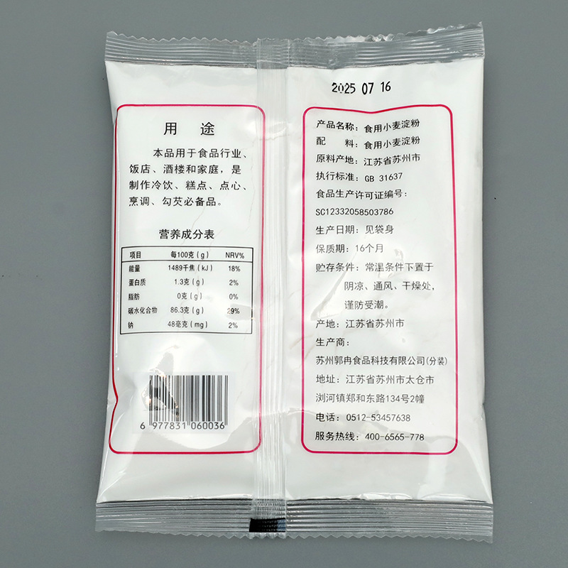 原料与配料 | 小麦淀粉 | | 等级 | 合格 |
