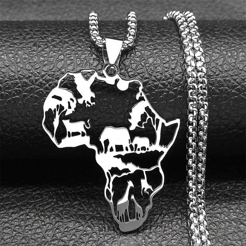 新款镂空动物地图吊坠长颈鹿狮子大象不锈钢项链饰品男士饰品批发