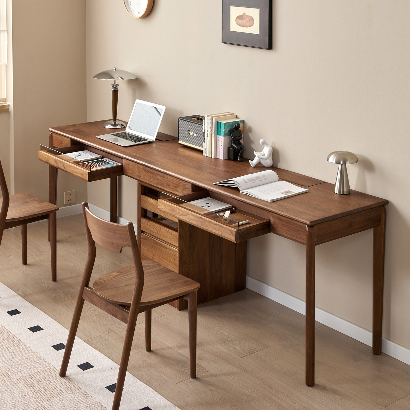北美黑胡桃木实木双人书桌现代简约樱桃木多功能学习桌电脑办公桌