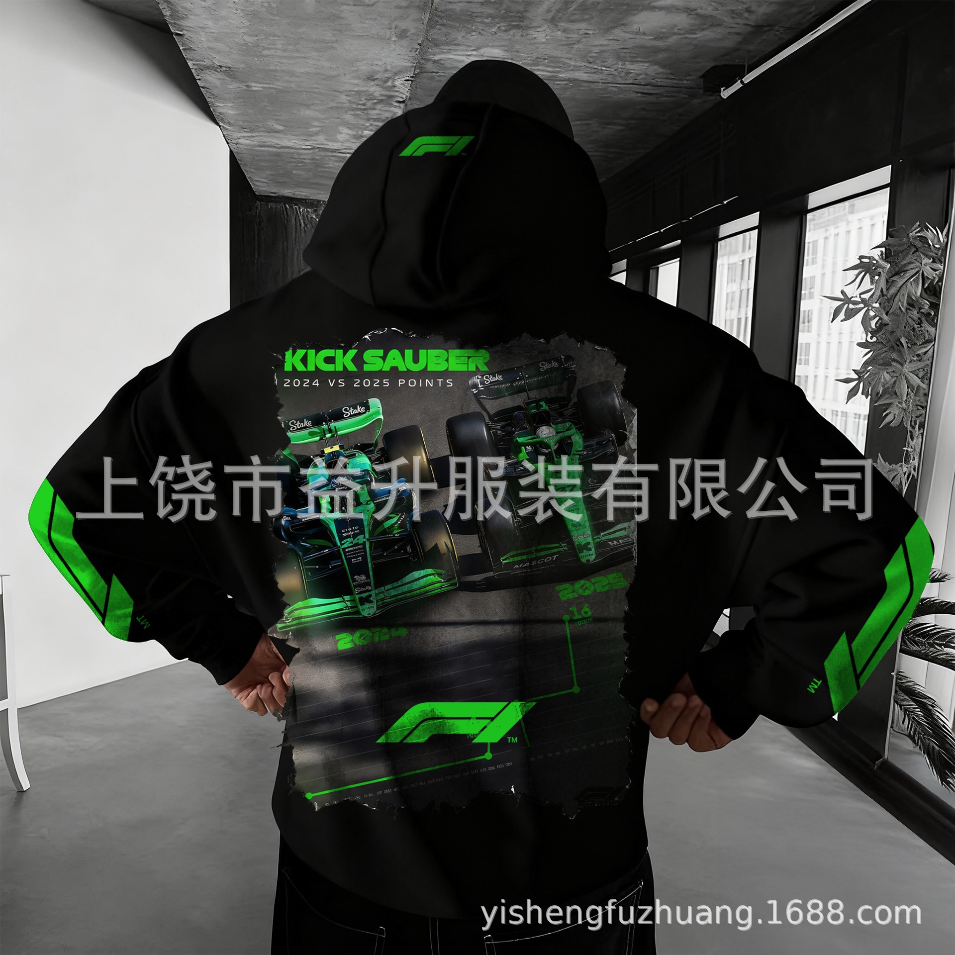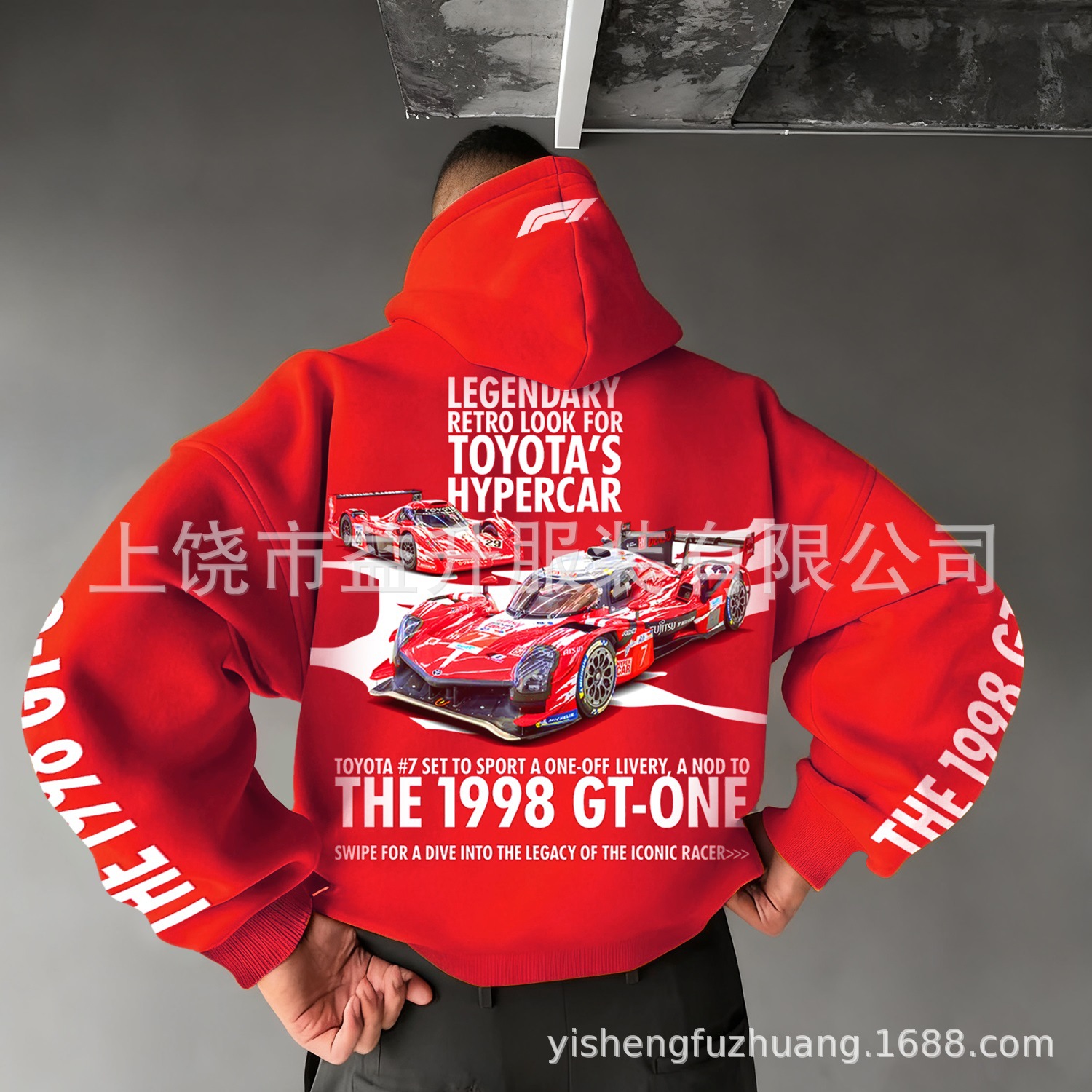 跨境欧美高街嘻哈赛车印花连帽卫衣男女美式街头宽松bf风情侣帽衫