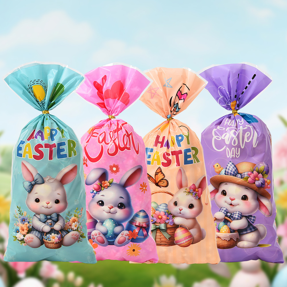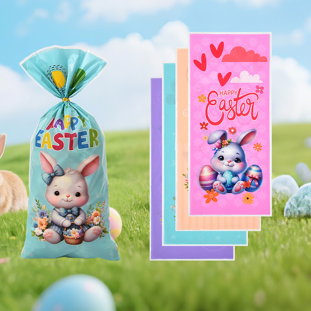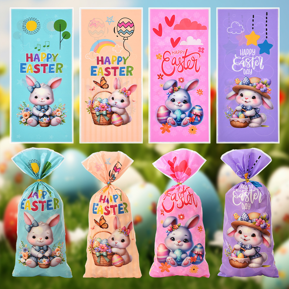 新款复活节opp平口袋兔子彩蛋图案四合一糖果袋玻璃纸包装袋批发